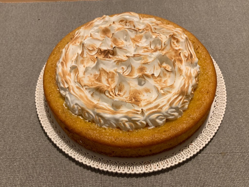 Una torta cremosa cotta già con ripieno di crema diplomatica e decorata con meringa di aquafaba, il liquido di conservazione dei ceci che ho utilizzato nell’impasto insieme alla farina ed amido di mais, pertanto priva di glutine. L’ennesima ricetta rivisitata ed arricchita della Chef Susan Martha di Florianópolis (Brasile). Semplice da preparare il pan di spagna ai utilizzando solo il frullatore. Chi lo desidera può fermarsi alla preparazione del solo pan di spagna già squisito di per se, per una ricca e salutare colazione o merenda, come fa la Chef.