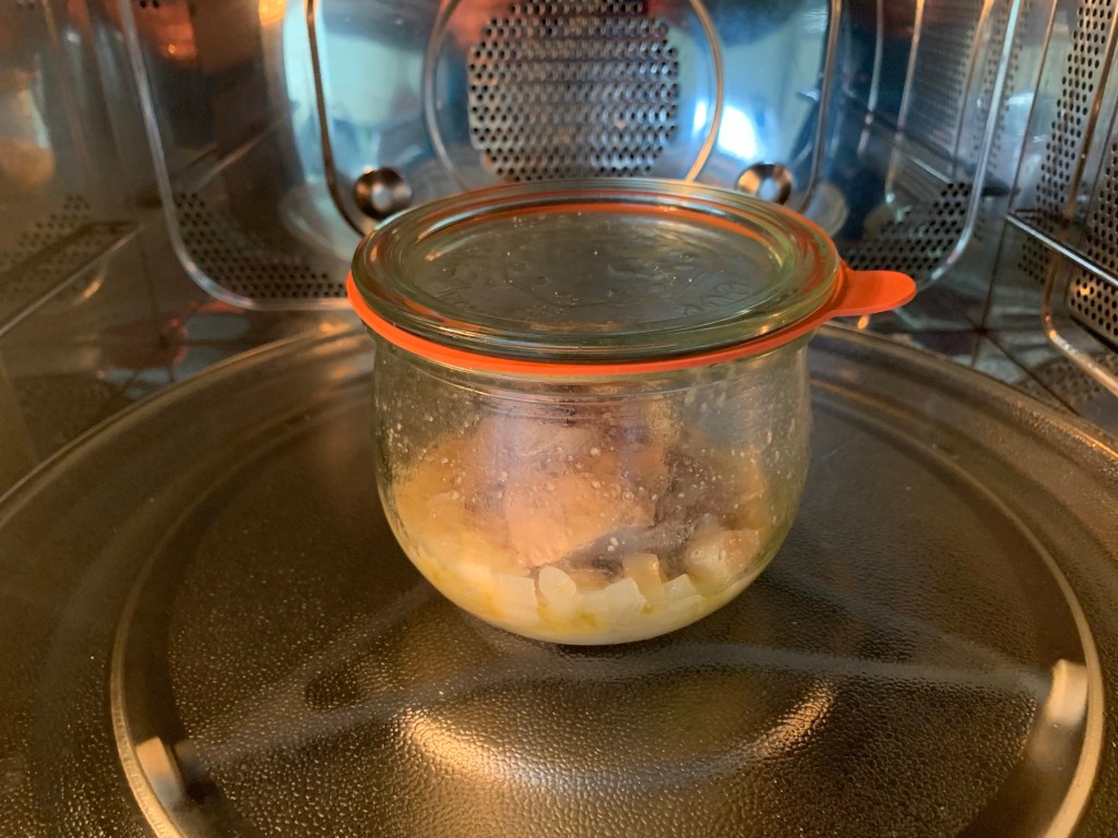 Se vuoi provare a replicare la ricetta e sei alla prima esperienza, ti consiglio di leggere prima le istruzioni che trovi in un mio post QUI “Vasocottura in Microonde“, dove troverai tutte le informazioni necessarie per cucinare con questa tecnica innovativa.
