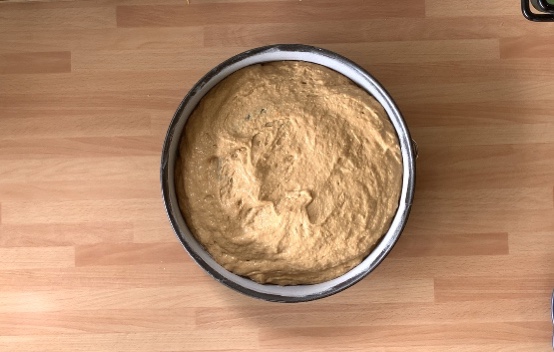 Versare il composto in una forma ad anello rimovibile a ciambella e cuocere in forno statico preriscaldato a 180 gradi per circa 40 minuti