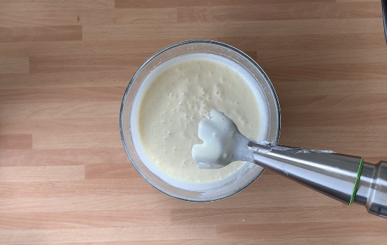 Ed emulsionare inizialmente con una frusta a mano e poi con un minipimer