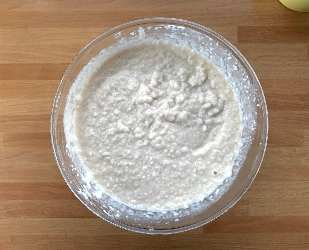 In una ciotola versare le perle di tapioca e aggiungere il composto di latte di cocco, mescolare bene con una spatola di gomma o cucchiaio di legno e far riposare per 15 minuti a temperatura ambiente,