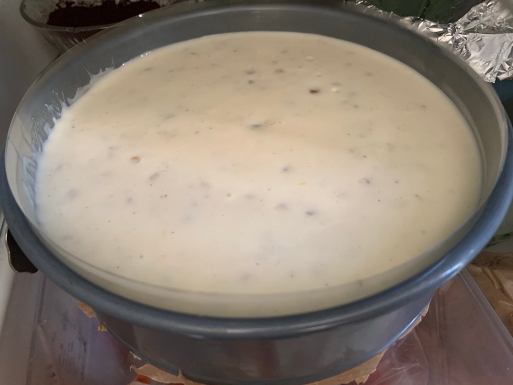 Versare la Cheesecake sulla base dei biscotti e livellare la superficie, trasferire in frigo e farla riposare per 2/3 ore