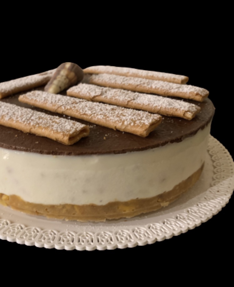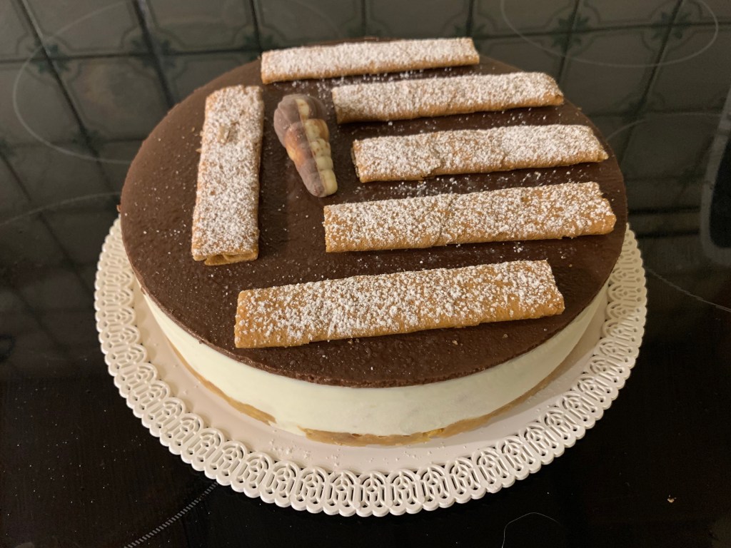 Prima di servirla l’ho decorata con delle Crêpes Dentelle, dei biscotti in sfoglia
