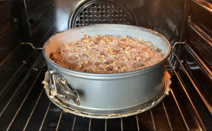 Cuocere in forno statico preriscaldato a 180 gradi per 20 minuti, poi coprire la torta con un foglio di carta alluminio e terminare la cottura per altri 20 minuti circa