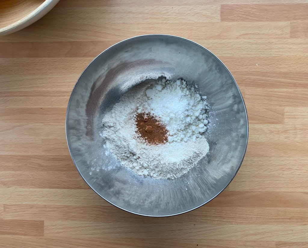 In una ciotola unire la farina di avena, l’amido di mais, la farina di riso e il sale, mescolare le polveri con un frustino a mano