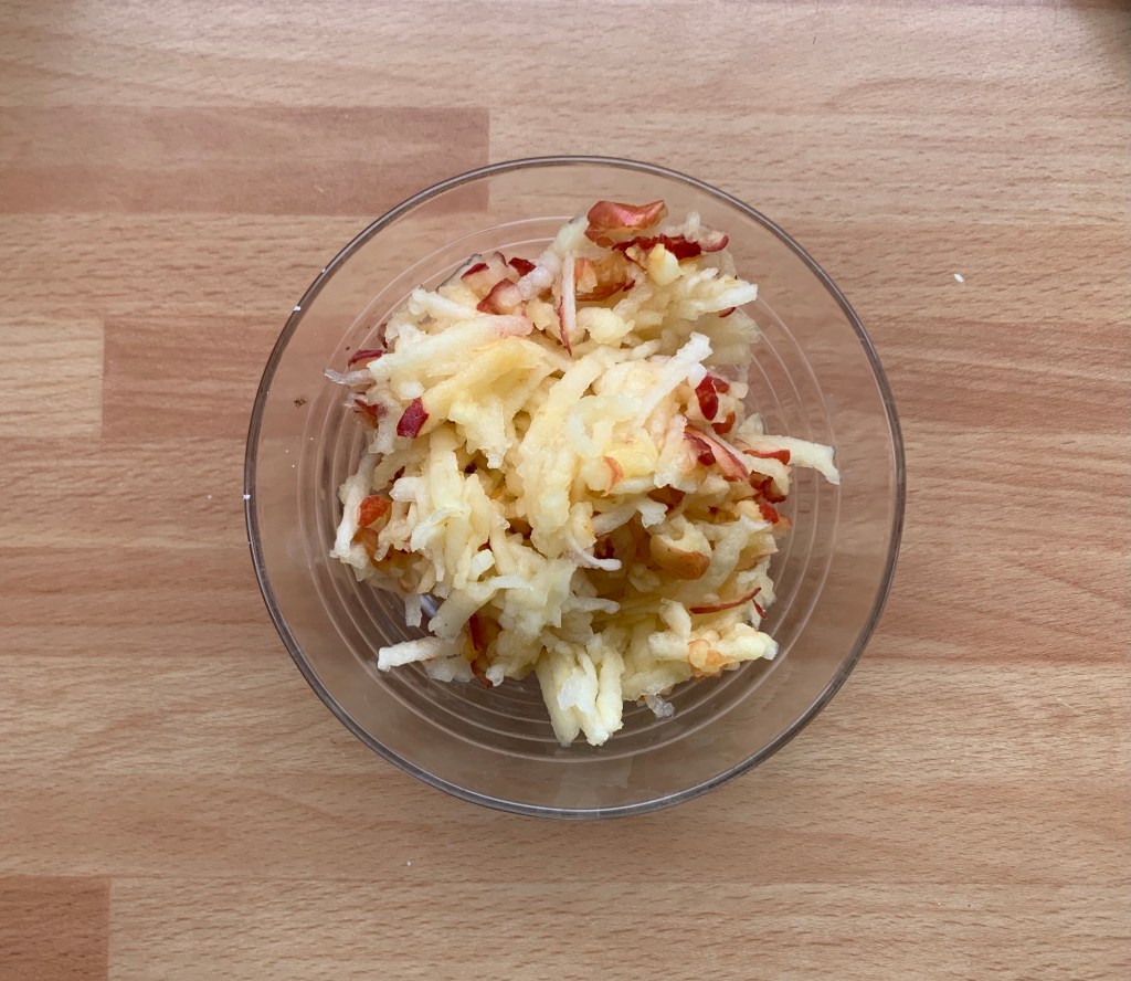 Nella ricetta uso mele con la buccia, basta lavarle bene prima di grattugiarle,