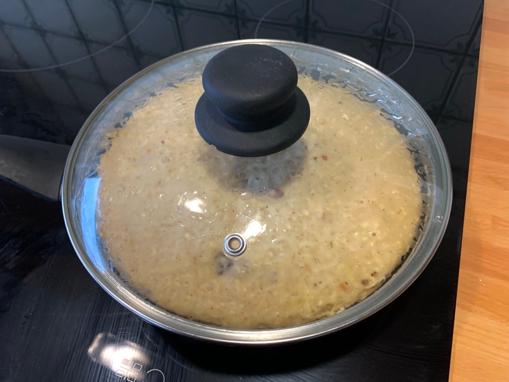 Chiudere con un coperchio e cuocilo a fuoco basso per 15 minuti, poi spegnere il fuoco e lascialo coperto 7 minuti,