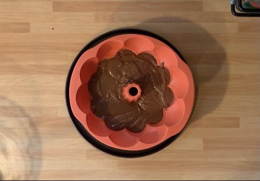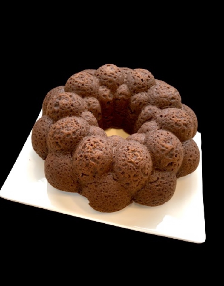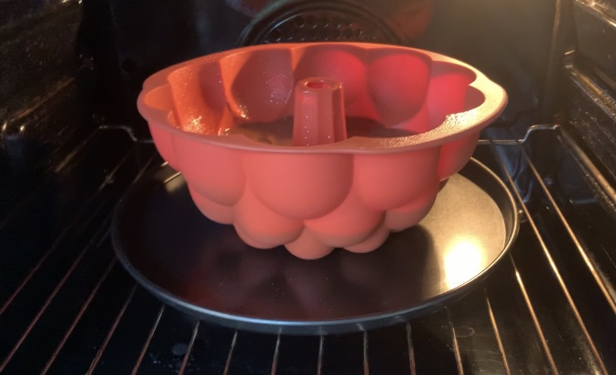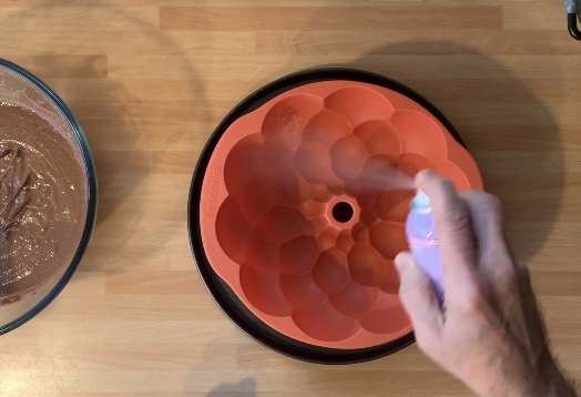 Pour the mixture into a silicone mold greased with a release spry and bake in a preheated static oven at 350 F degrees for about 30 minutes, check with a toothpick starting from 22 minutes