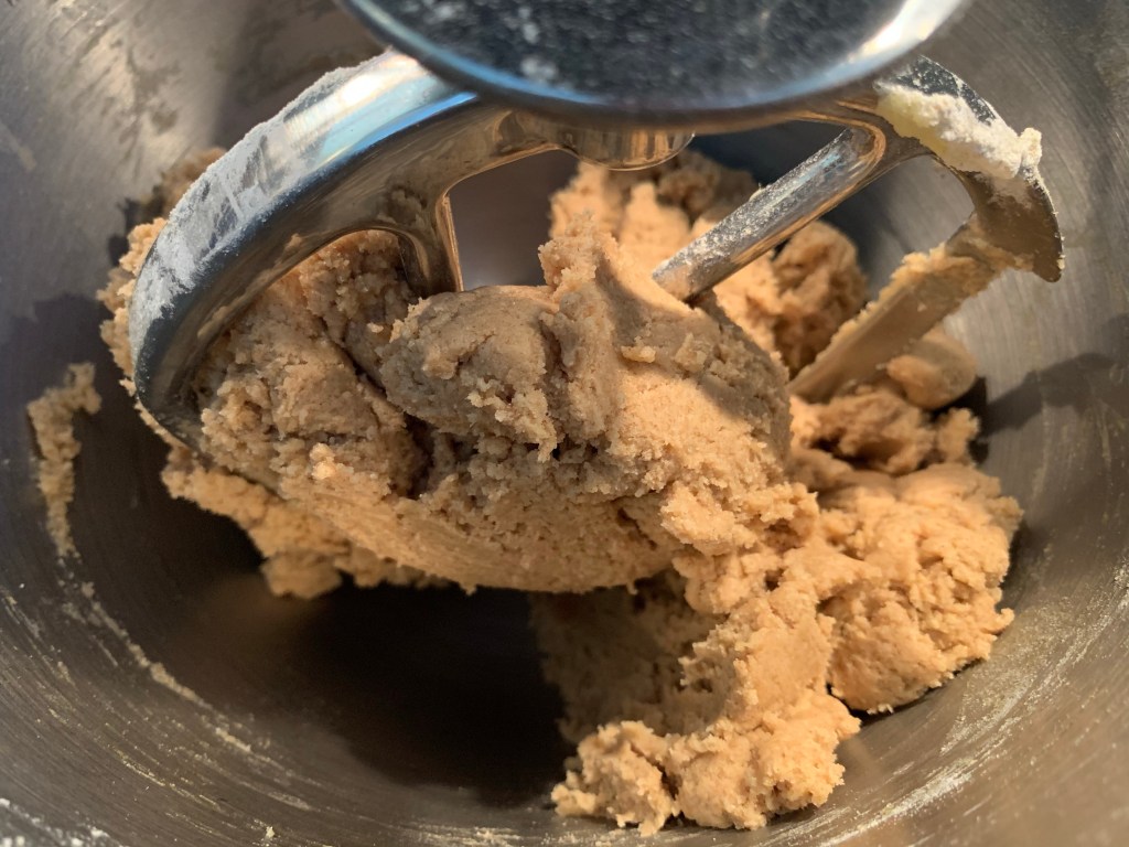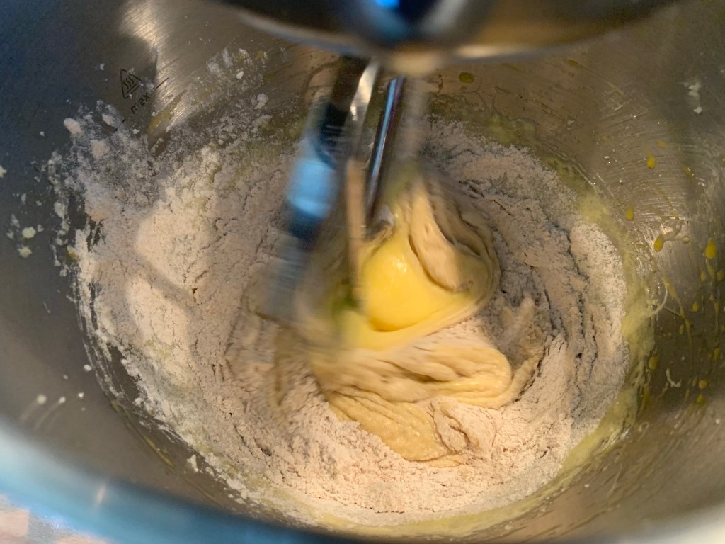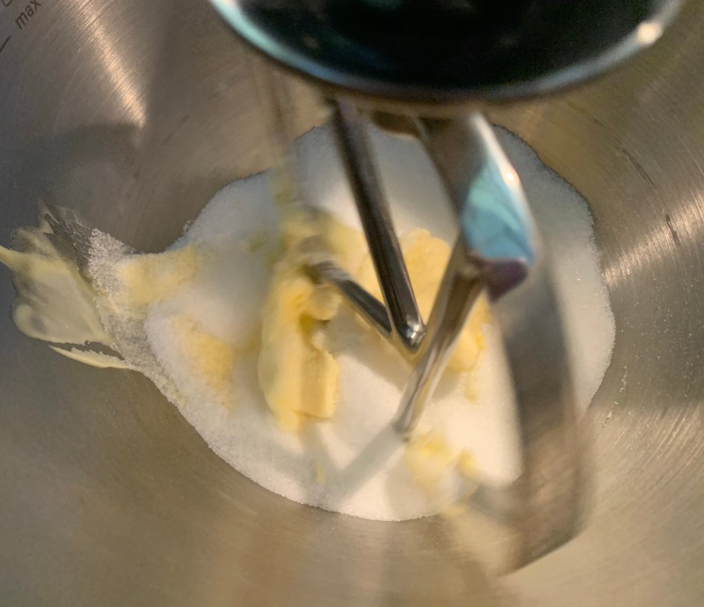 Nella ciotola della planetaria unire il burro a temperatura ambiente e lo zucchero, impastarlo con la foglia fino a creare una crema omogenea, aggiungere in 3 volte 3 delle uova leggermente sbattute con la vaniglia