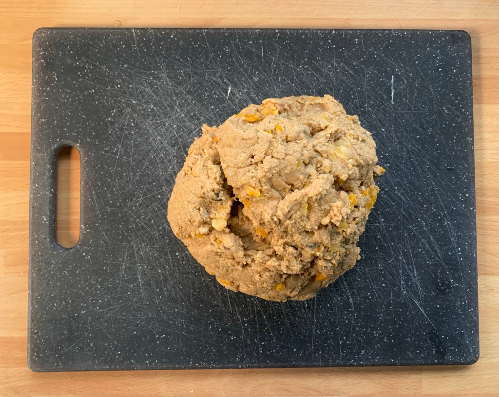 Rimuovere con una spatola l’impasto intorno alla foglia e aggiungere la frutta disidratata pre idratata con acqua calda e tagliata a dadini, la frutta secca ed incorporarli all’impasto, facendo girare la foglia a bassa velocità