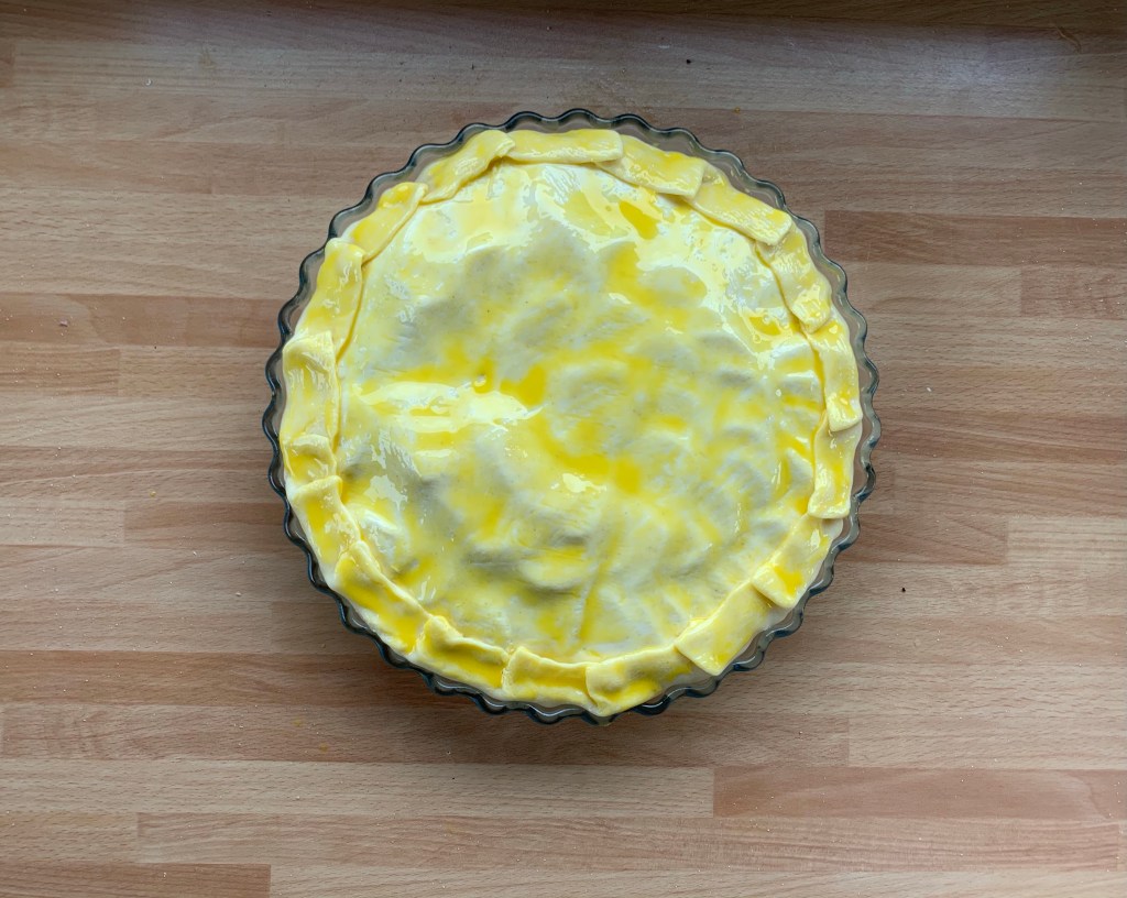 Spennellare tutta la superficie con il tuorlo d’uovo ed infornare per circa 45 minuti a 180 ° C.
