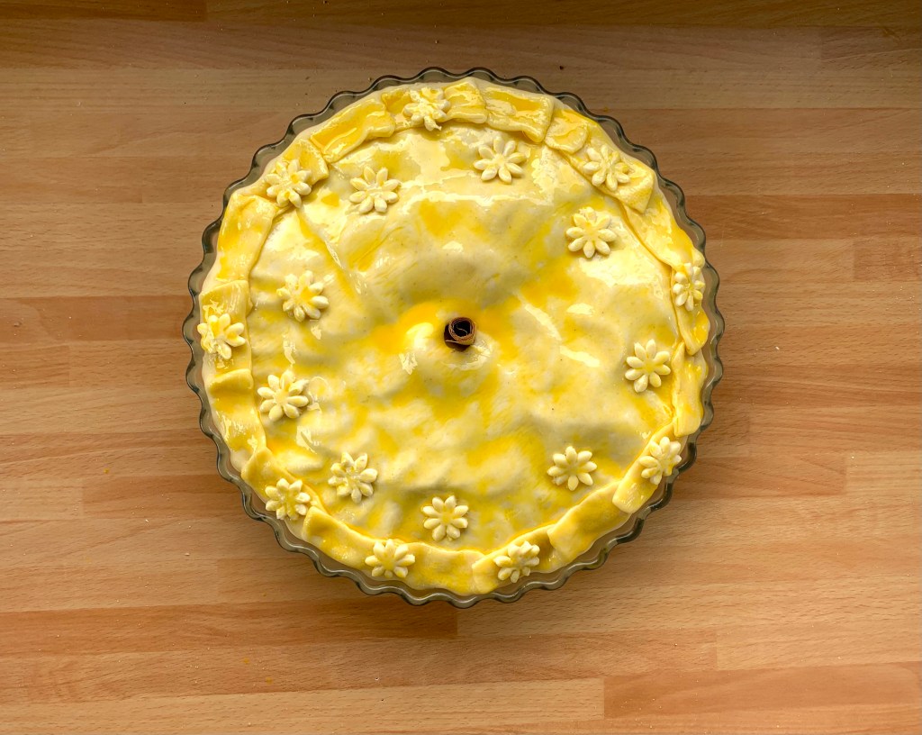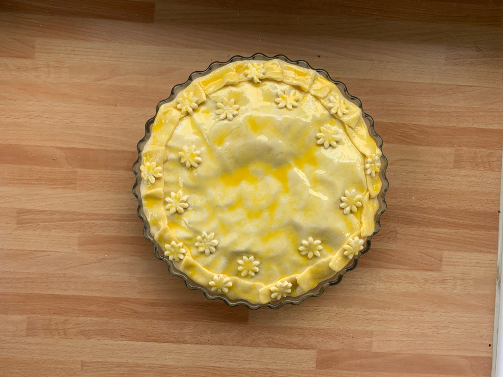 Con la rimanente pasta sfoglia ho decorato la superficie con dei fiorellini.