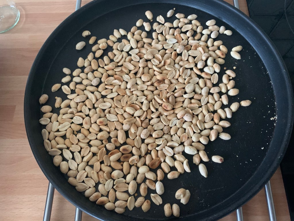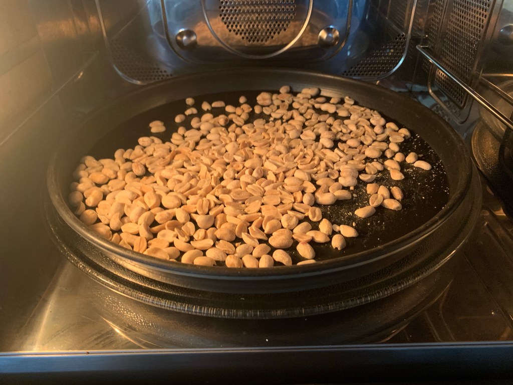 Per prima cosa tostare le arachidi, io ho usato il microonde per 6 minuti mescolando ogni due minuti