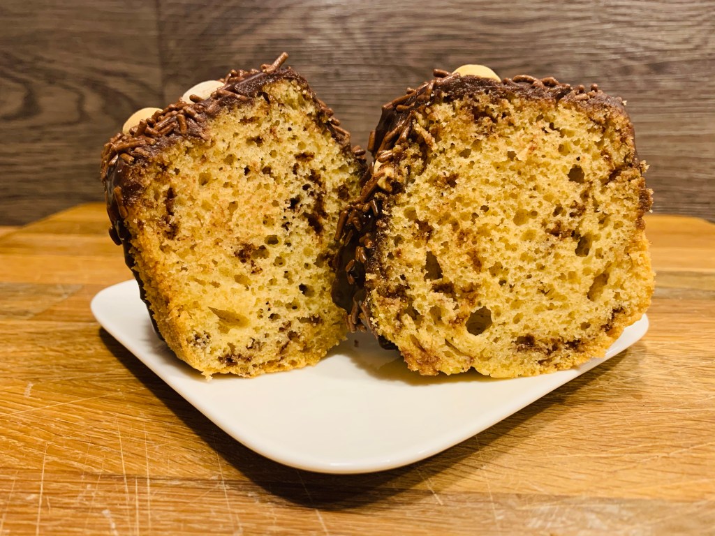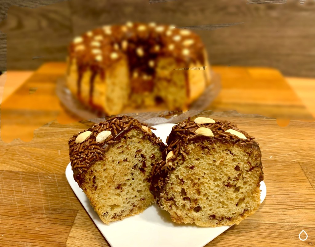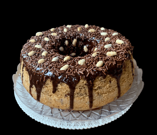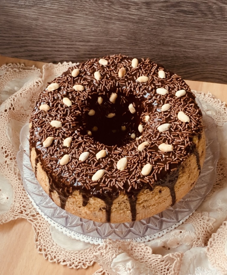 Ancora una ricetta della mia mentore Chef Susan, una Ciambella con vermicelli di cioccolato e arachidi tostate che viene chiamato “Bolo Formigueiro”. Privo di glutine e lattosio, ricco in fibre, molto morbido e con una leggera ganache al cioccolato e latte di cocco.l che copre appena la superficie.