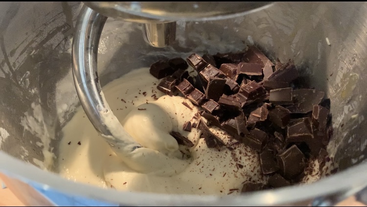 Infine aggiungere i pezzetti di cioccolato e far girare il gancio a bassa velocità per integrarlo all’impasto