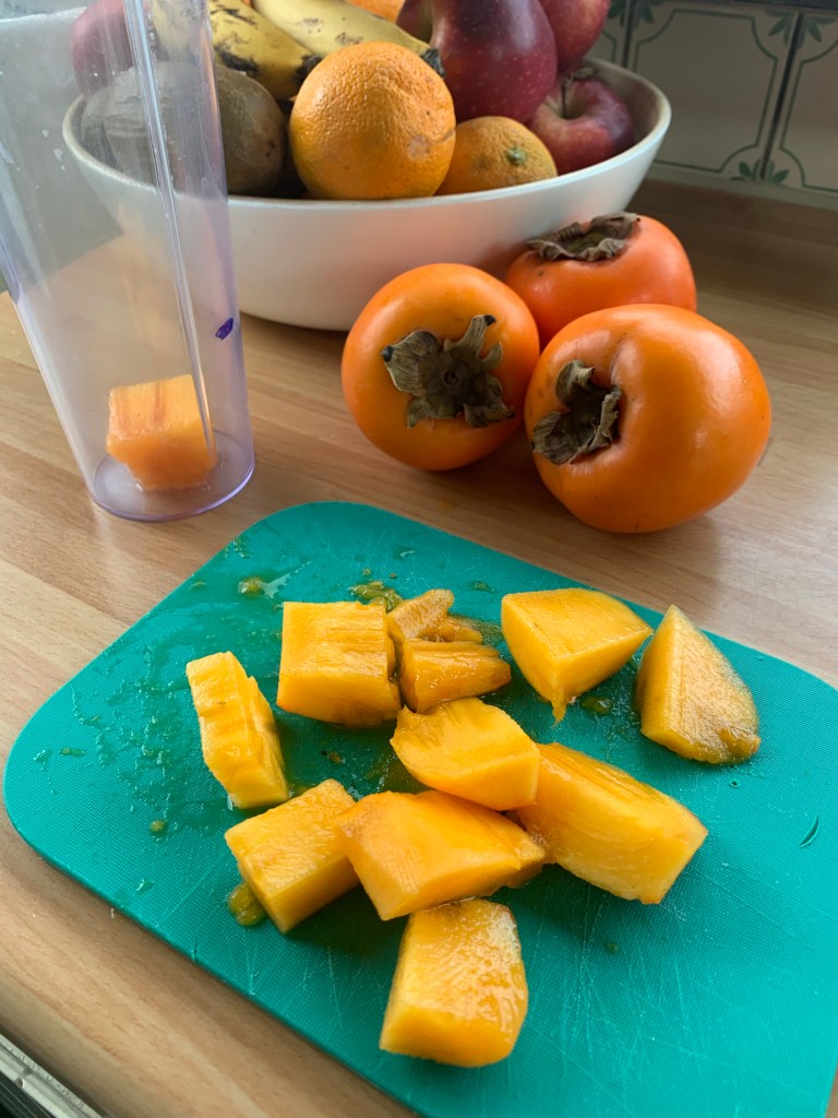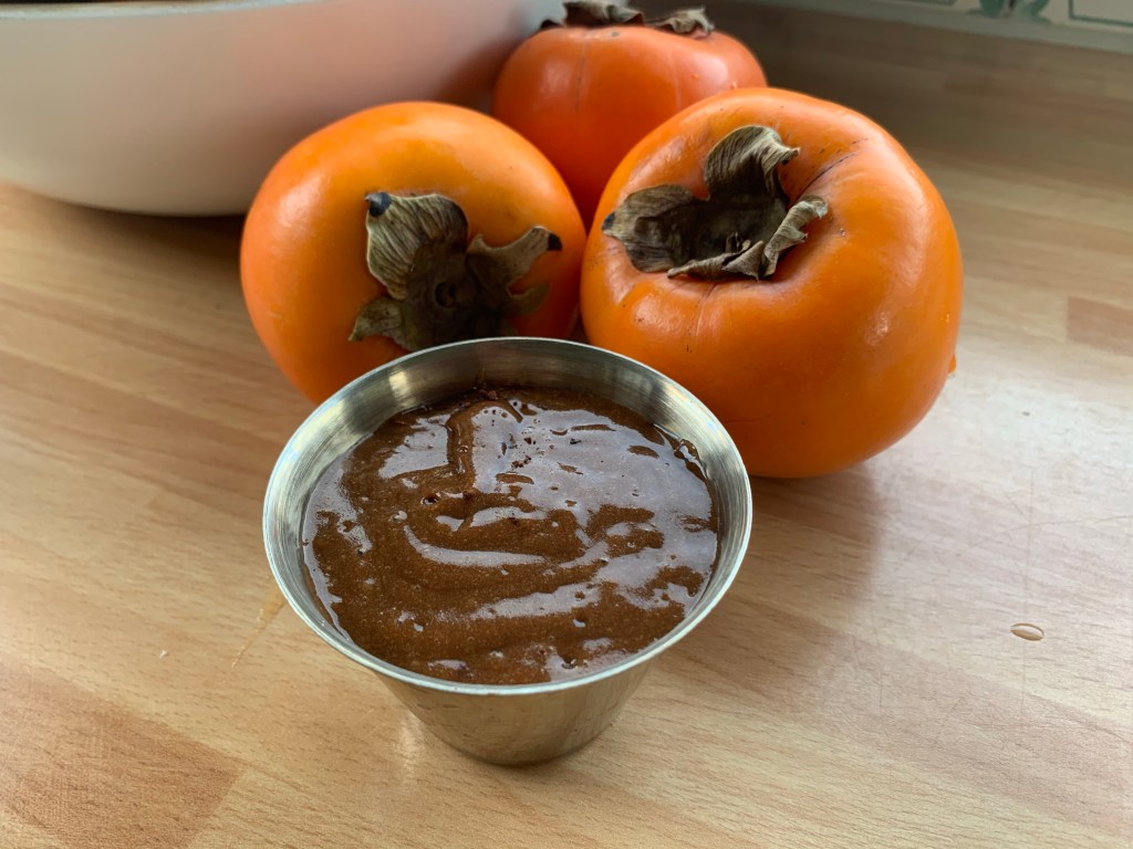 Pelare il caco e inserire la polpa in un frullatore insieme al cacao e al latte condensato, frullare fino a creare un composto omogeneo