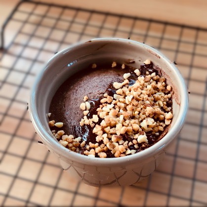 Versare il composto in un ramequin e cuocere in Airfryer a 180 gradi per 8 minuti o 13 minuti in forno
