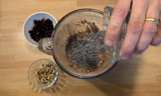 Aggiungere e mescolare a mano le gocce di cioccolato, i mirtilli e le noci