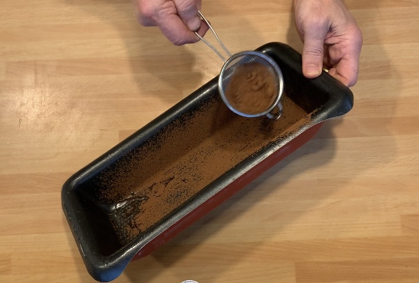 Poiché si tratta di una ricetta veloce da preparare, preriscaldare il forno a 180° ed ungere una forma da plumcake con un filo d’olio vegetale e spolverizzare di cacao amaro con un colino.