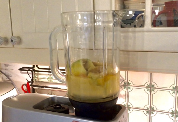 Nel boccale del frullatore unire le mele, le uova, l’aceto di mele, l’essenza di vaniglia, lo zucchero, l’olio e il sale e frullare fino a formare un composto uniforme.