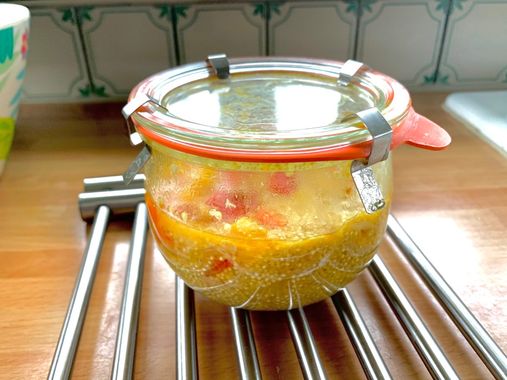 A cottura ultimata prendere il vasetto con un panno, smuoverlo nuovamente e adagiarlo su una gratella per riposare 20 minuti, durante questo tempo completerà la cottura e creerà il sottovuoto