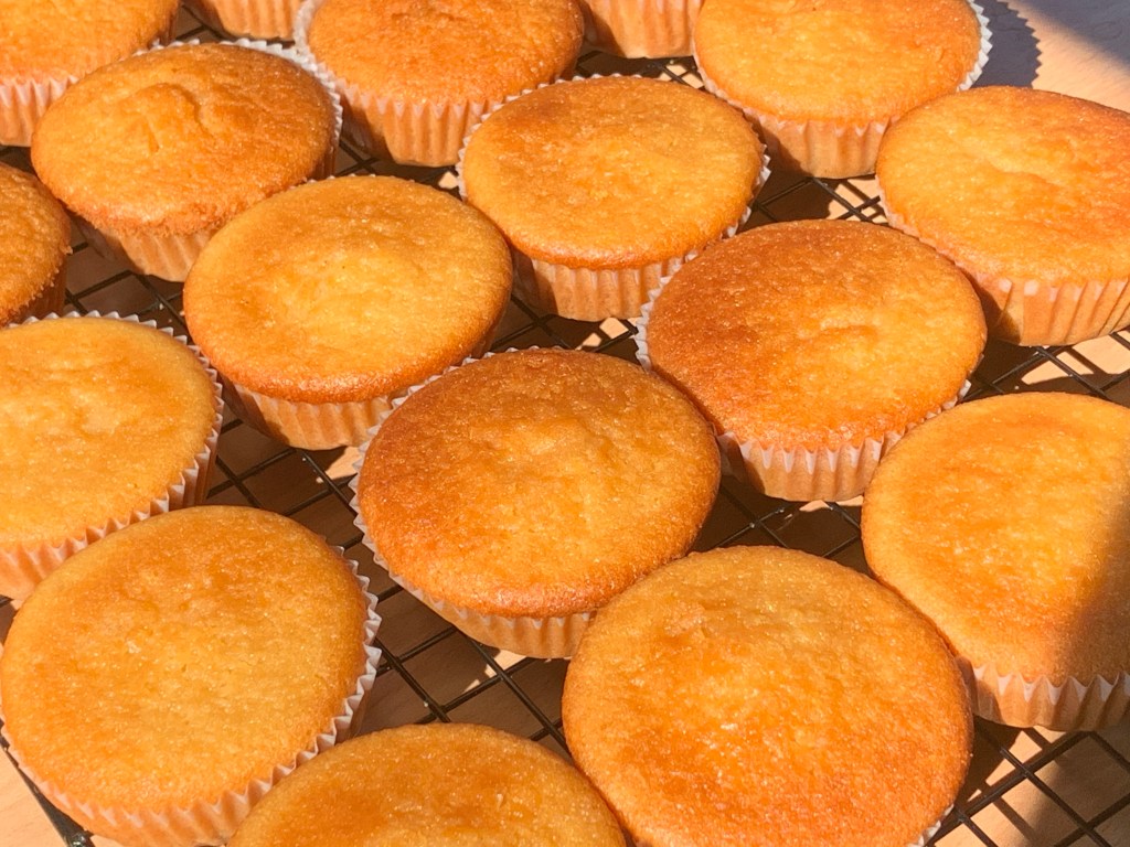 Spennellare con la bagna tiepida i cupcakes ancora caldi in maniera abbondante
