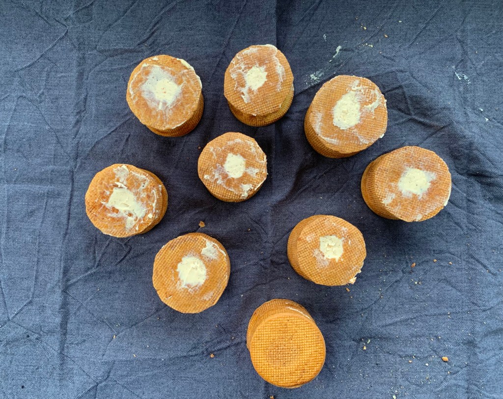 Con la Ganache creare dei ciuffi e coprirli con i petali di pasta fillo cotti in forno e frantumati