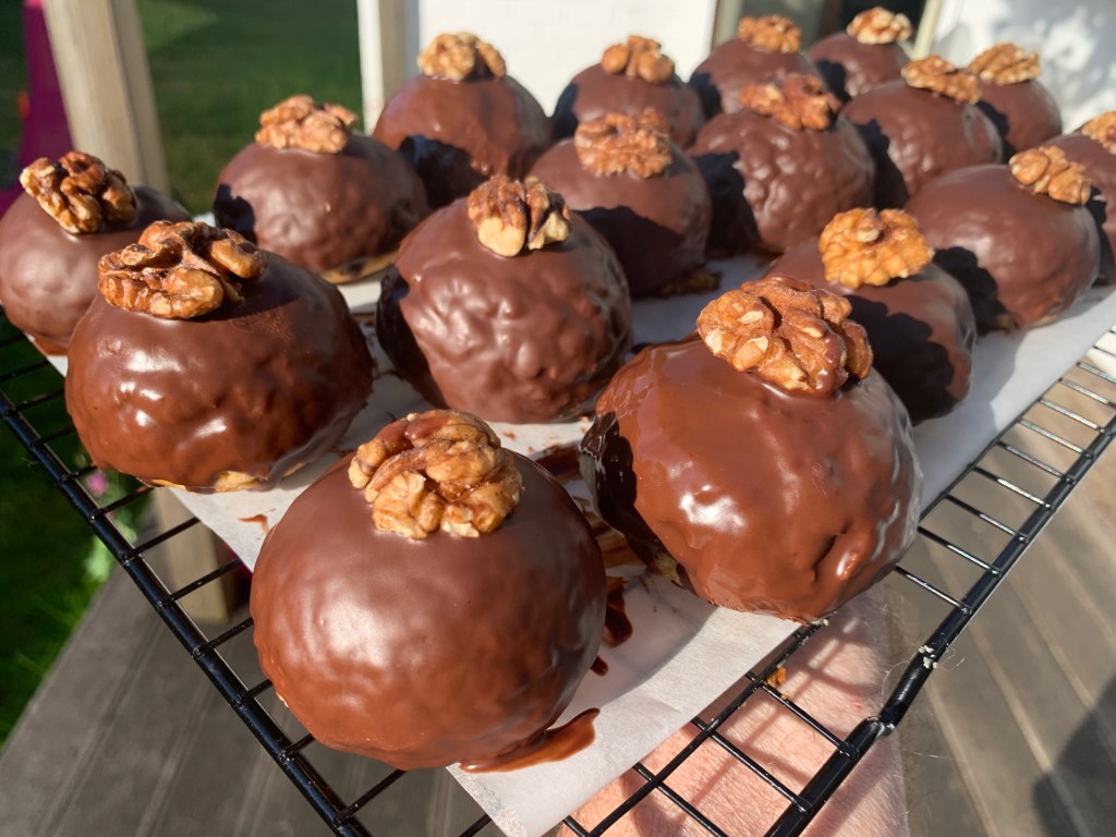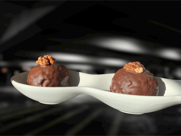 Adagiare su ogni Noix Japonaise un gheriglio di noce e porre in frigo fino alla degustazione