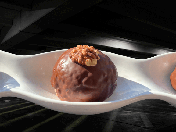 Una ricetta tipica francese anche se ha un nome riferito al Giappone. Un choux craquelin, farcito con una crema al pralinato di nocciole e mandorle, glassato con cioccolato fondente e una noce per decorazione.