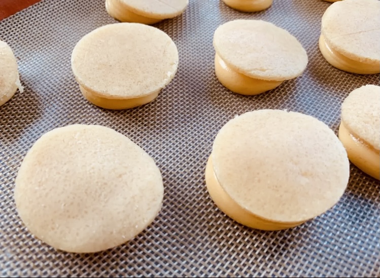 Riempire con l’impasto un sac a poche con una punta liscia da 2 cm e formare degli choux da circa 4 cm su un tappetino di silpat o carta forno