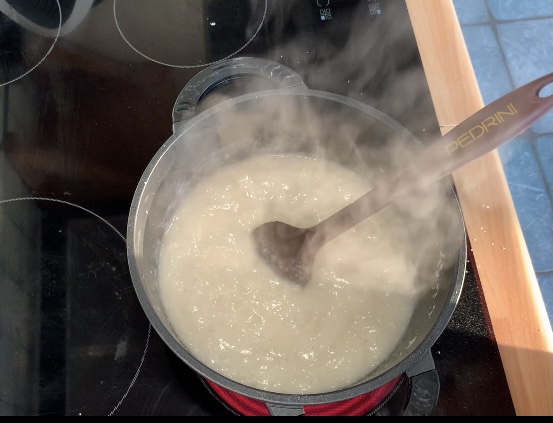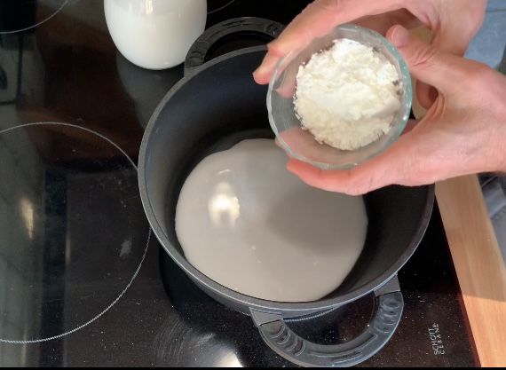 Nel frattempo preparare la Crema al Cocco unendo in un pentolino prima una parte de latte di cocco per diluire l’amido di mais, poi aggiungere tutti gli altri ingredienti, dopo aver mescolato gli ingredienti portare sul fuoco medio e cuocere per circa 10 minuti