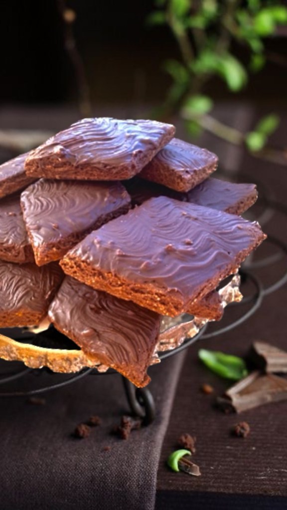 I mostaccioli sono biscottoni a forma di rombo aromatizzati con arancia, cacao, un mix di spezie che viene chiamato pisto e ricoperti di cioccolato aromatizzato al liquore di arance.