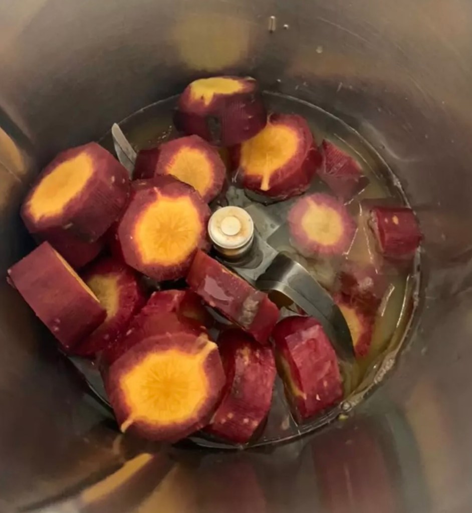 In un carter o Bimby frullare le carote pelate e tagliate a rondelle, il succo di arancia e l’olio e mettere da parte