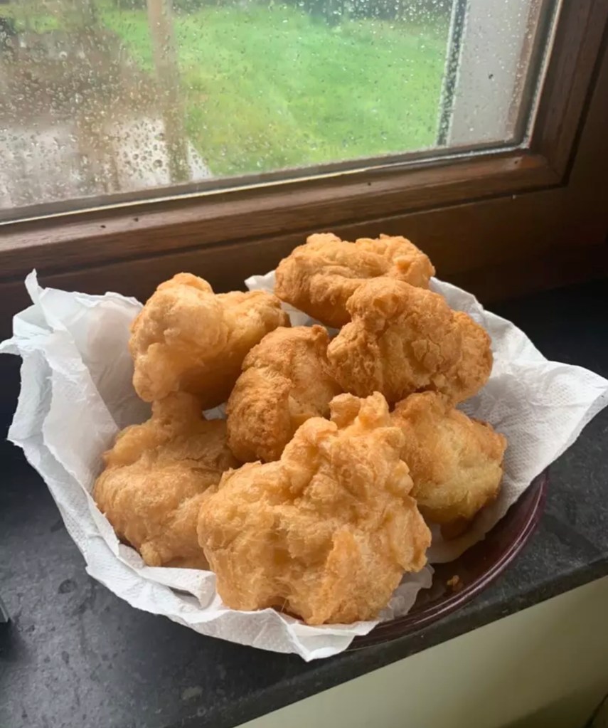 Cuocete 3-4 cucchiaiate di composto per volta in abbondante strutto caldo a 165 °C rigirandoli di tanto in tanto fino a farle gonfiare e dorare bene per circa 10 minuti, di tanto in tanto picchiettarli con il mestolo per far prendere aria e gonfiarsi di più, poi adagiatele su della carta assorbente in modo che perdano l’olio in eccesso e lasciarle raffreddare