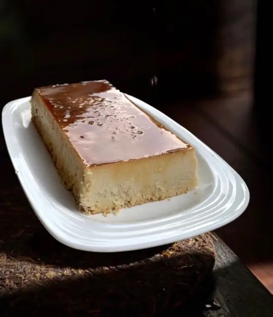 Un dolce delicato al sapore di cocco che biene inserito nella ricetta sia come latte che essiccato ridotto in farina. Gli altri ingredienti sono i tradizionali della base del Flan brasiliano e argentino, il latte condensato e le uova su una base di caramello.