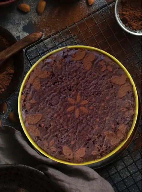 Lasciar raffreddare, rimuovere la Torta Caprese dallo stampo e servirla con una spolverata di cacao.