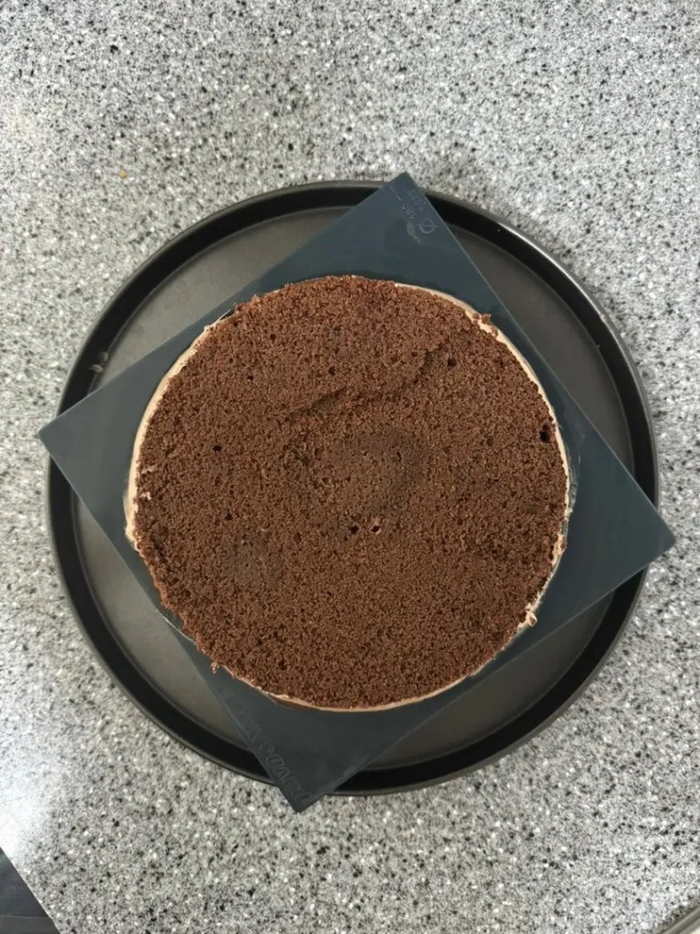 Bagnare il biscotto con la bagna al rum, spalmare sulla superficie il croccante fatto con cioccolato al latte fuso con briciole di amaretti e raffreddare in frizer