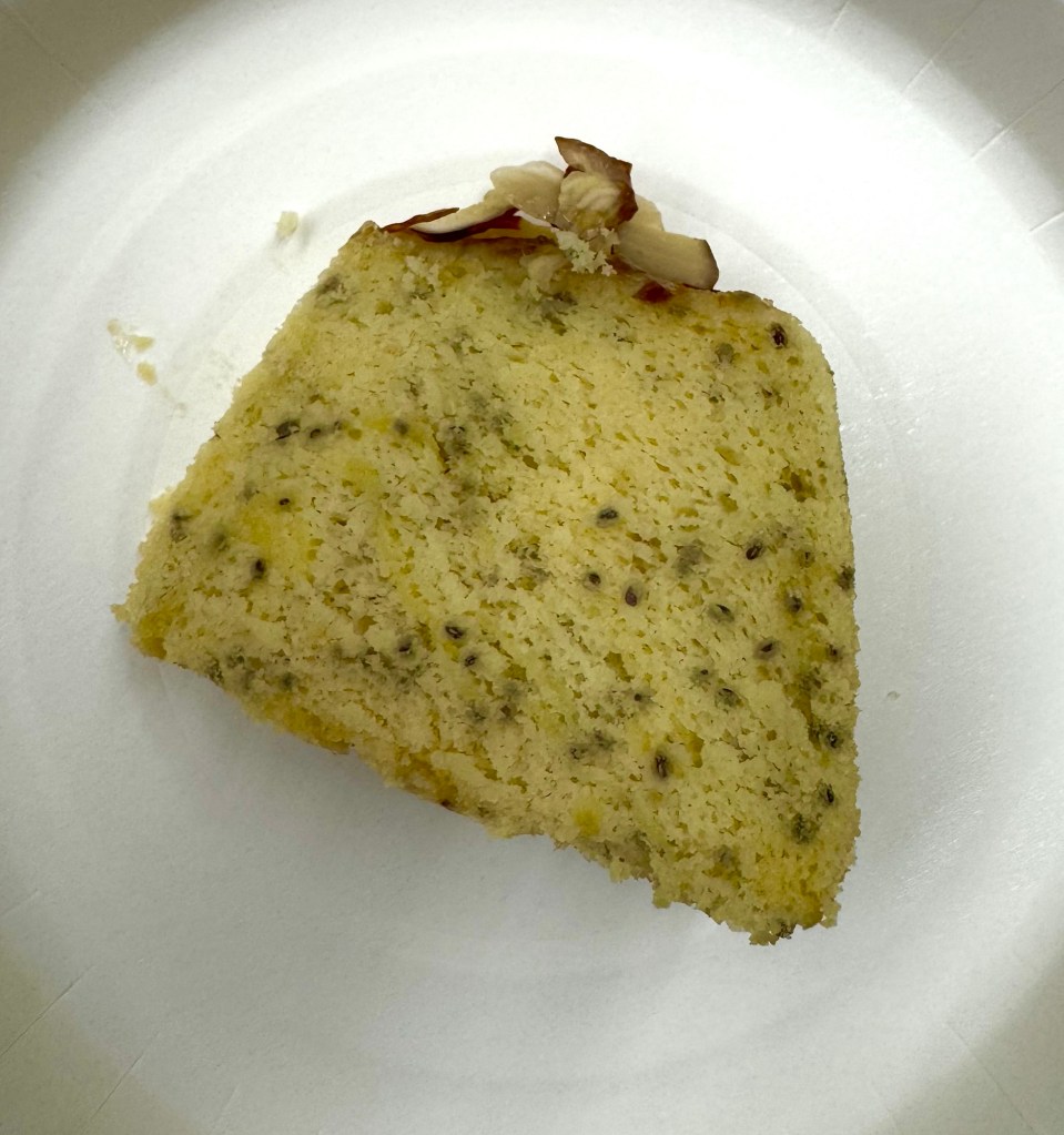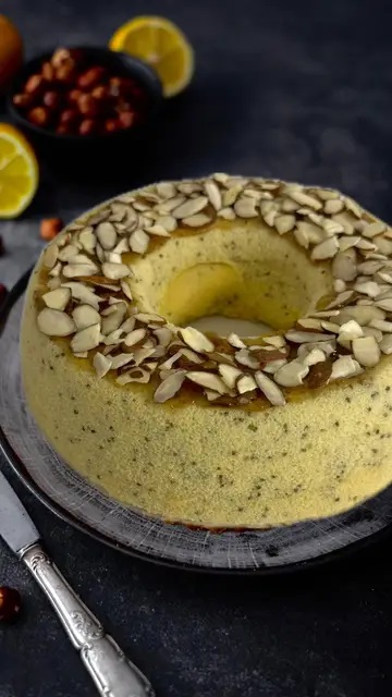 Servire la Ciambella con un velo di confettura di fichi e filetti di mandorle