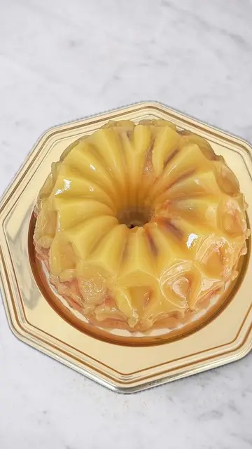 Accendere il fuoco e portare a cottura fino a formare una crema morbida, spegnere il fuoco e versarla nello stampo utilizzando per la cottura della ciambella lavato e leggermente bagnato con acqua ed inserire il ciambellone sulla crema