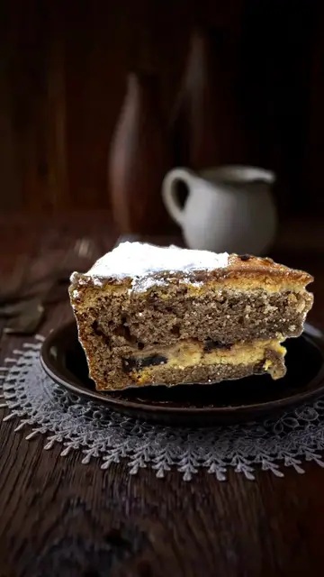 Versare la metà dell’impasto del biscotto sacher, adagiare il disco di farcia di pastiera e coprire con il rimanente impasto sacher.